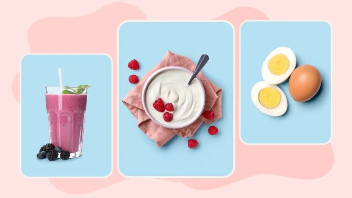 - Зварені круто яйця з цільнозерновими тостами: Яйця містять нежирний білок, а цільнозернові тости містять складні вуглеводи, клітковину та необхідні поживні речовини.